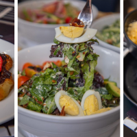 Greens, Grilled Chicken, Hard-Boiled Egg, Avocado, Chives, Tomatoes, Bacon, Chunks of Blu Cheese, and House Vinaigrette